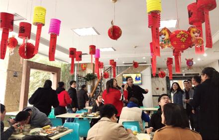 (通訊員 辦公室 吳雪飛)“姹紫嫣紅辭舊歲,山之一隅迎客來”(打公司一項目名)、“小火慢燉”(打公司一人名)、“一七對九走三五”(打一環(huán)保指標)……2018年3月2日,正值中國傳統(tǒng)元宵佳節(jié),集團公司食堂掛滿了一個個火紅的燈籠,燈籠下趣味十足的燈謎吸引著所有就餐人員的目光。大家邊吃湯圓邊猜燈謎,猜中的人歡呼雀躍,沒猜出來的人絞盡腦汁。這是東新高新集團舉辦“猜燈謎 慶元宵”活動現場的一景,員工食堂處處洋溢著溫馨歡樂的氛圍。