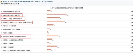經(jīng)過24小時的線上匿名投票,財務管理部張?zhí)m 、光谷環(huán)保合同能源部張琪、科技園招商策劃部任謙、科技園設計管理部歐陽威4名投票排名最高的同事獲得200元、100元及50元(兩名)新華書店讀書券的獎勵。獲獎者可以在武漢市內自行選購書籍,也可在東湖高新線上詩歌朗誦會現(xiàn)場選購。