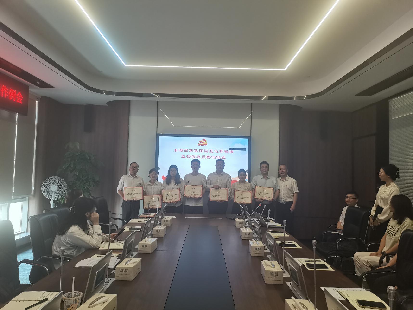 在監(jiān)督信息員聘任儀式上,會議傳達了《武漢東湖高新集團股份有限公司監(jiān)督信息員管理暫行辦法》《園區(qū)運營板塊監(jiān)督信息員工作實施辦法(試行)》,宣讀了東湖高新紀(jì)委《關(guān)于聘任江振華、龔玄等2名同志為武漢東湖高新集團股份有限公司監(jiān)督信息員的決定》《關(guān)于聘任龐義、馬鋒等12名同志為武漢東湖集團股份有限公司監(jiān)督信息員的決定》。姜玉林同志為7位新任監(jiān)督信息員代表頒發(fā)聘書,監(jiān)督信息員代表江振華、許玲玉作表態(tài)發(fā)言。